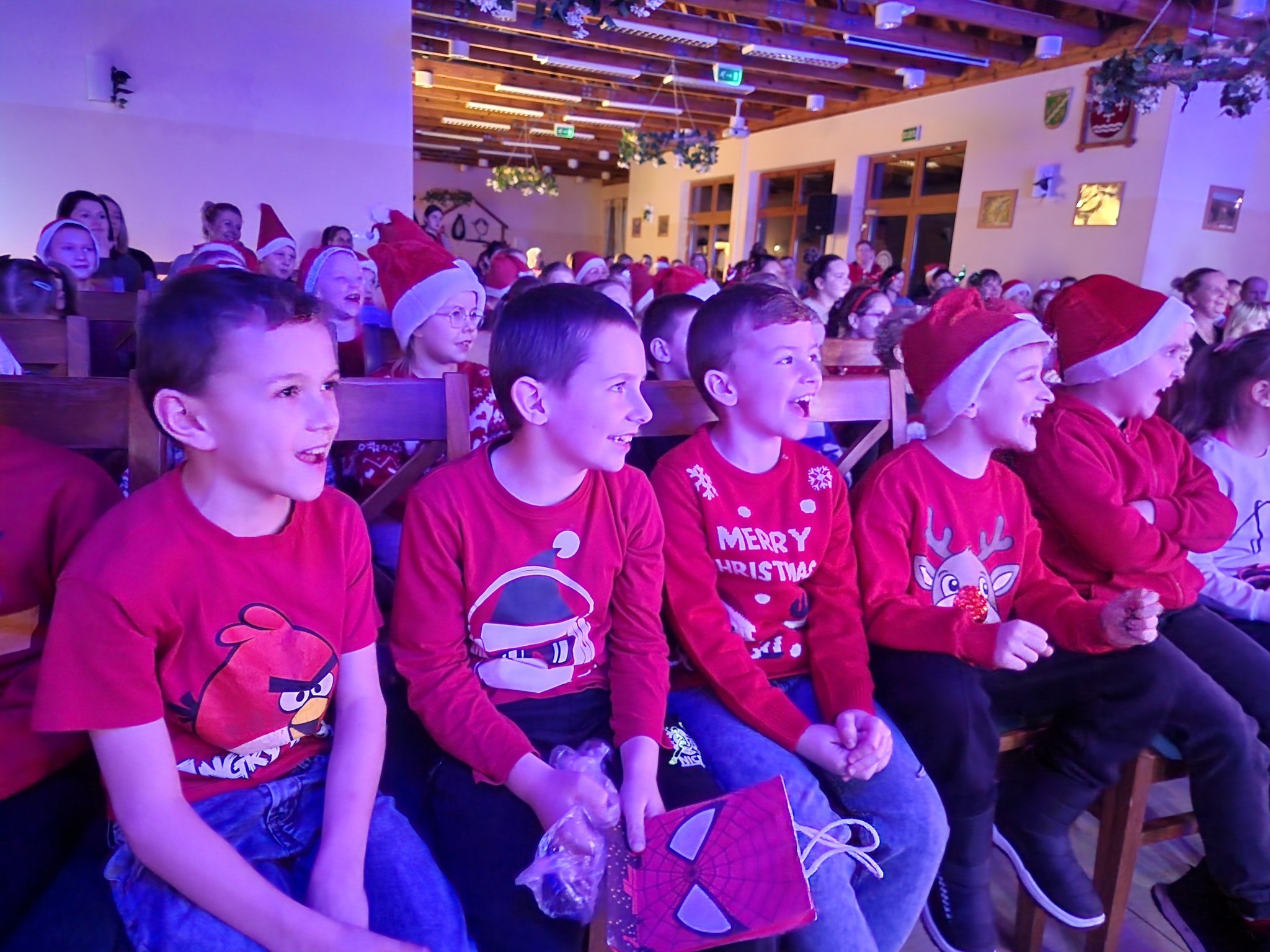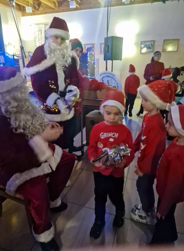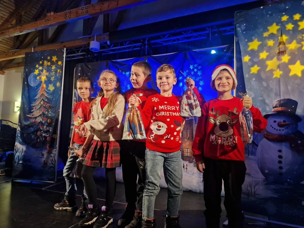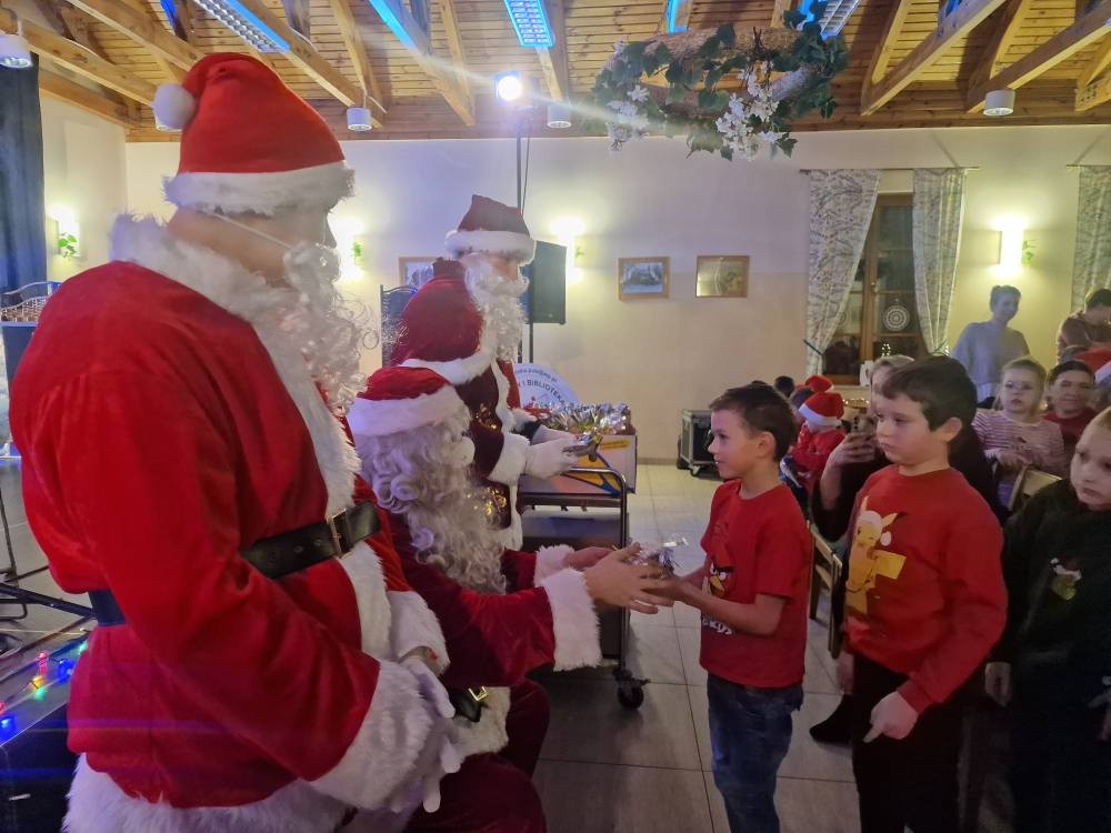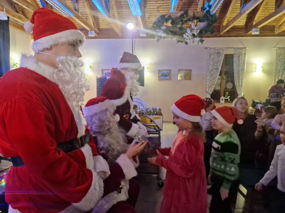 Dzieci szalały a z ich roześmianych buziek tryskało szczęście i zadowolenie, tym bardziej że stały się współ bohaterami zdarzeń i brały aktywny udział w przygodach Jadzi i Wojtka. Nie mniej pozytywnych emocji przyniosło wiele pozytywnych emocji wejście Mikołaja, który w towarzystwie dwóch innych kolegów i elfa obdarowali milusińskich upominkami. Po otrzymaniu prezentów i odbytych sesjach zdjęciowych z Mikołajem i jego świąteczną asystą zachwycone dzieci wróciły do domów. Kolejny – przedostatni w mijającym roku projekt Centrum Kultury i Biblioteki Publicznej w Kamieńcu zakończył się ogromnym sukcesem, czego najlepszym świadectwem są uśmiechnięte buzie dzieci. Ten magiczny piątek na długo zostanie w pamięci Organizatorów – grupy niezawodnych świętych Mikołajów i najmłodszych gości Mikołajek! A przepiękna choinka znalazła swoje miejsce w siedzibie CKiBP!