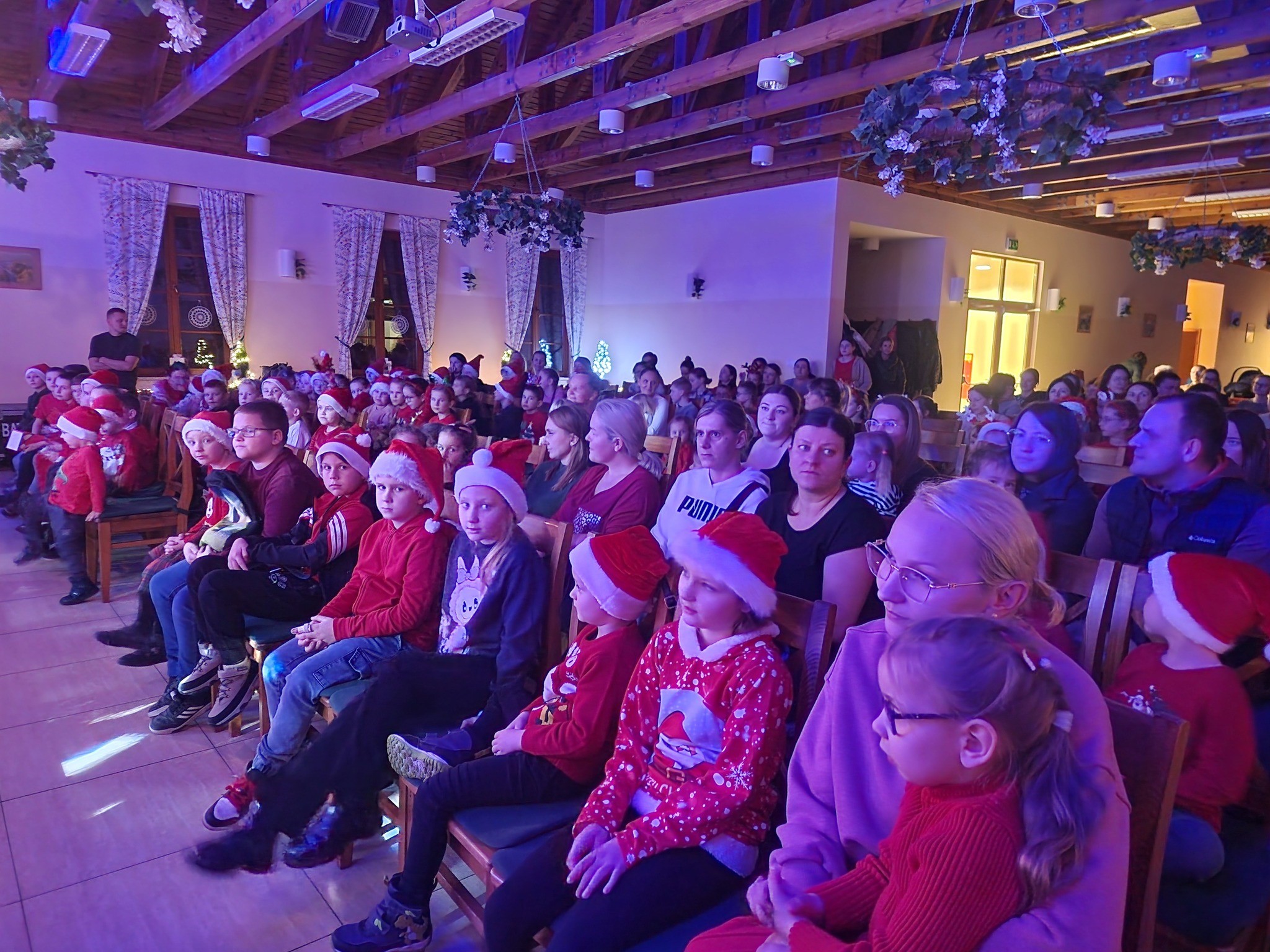 Piątkowe popołudnie w Chacie Biesiadnej w Kamieńcu wypełniła po brzegi dziecięca radość. Dla NICH bowiem, najważniejszej części gminnej społeczności, Centrum Kultury i Biblioteka Publiczna we współpracy z Kołem Gospodyń Wiejskich, Sołectwem i panem Sołtysem wsi Kamieniec zorganizowało „Bajkowe Mikołajki” połączone z uroczystym rozświetleniem pięknej CHOINKI, ustawionej tym razem na pięknie udekorowanej scenie. Na kilka minut przed 16:00 w Chacie zgromadziły się roześmiane czekające na świąteczne atrakcje dzieci wraz ze swoimi rodzicami. Większość z nich odpowiedziało pozytywnie na prośbę CKiBP i mali goście przynieśli przepiękne ozdoby choinkowe, własnoręcznie wykonane, którymi została ozdobiona choinka. Po zawieszeniu na drzewku piękności nastąpiło wspólne odliczanie i uroczyste rozświetlenie choinki. Kolejną część imprezy stanowił spektakl „Święty Mikołaj – Historia prawdziwa” przygotowany przez zaprzyjaźniony z CKiBP „Teatr z Uśmiechem” z Krakowa. Na tle pięknej scenografii dwoje aktorów przedstawiło niesamowitą historię, która miała odpowiedzieć, czy święty Mikołaj naprawdę istnieje? Dzieci na całym świecie czekają, aby je odwiedził w pewną, zimową noc. Ale są tacy, którzy w niego nie wierzą i do nich należy Wojtuś, bohater naszego przedstawienia. Jadzia jest bardzo grzeczna przez cały rok, bo wyczekuje prezentu od św. Mikołaja. Z kolei Wojtek jest niesfornym ancymonem i nie dowierza, że prawdziwy św. Mikołaj do niego przyjdzie. Pewnego dnia w miasteczku zostaje otwarty Jarmark Bożonarodzeniowy, na którym można zobaczyć ogromną szopkę z prawdziwymi zwierzętami. Wojtuś wpada na pomysł, by „pożyczyć sobie renifera” i zabrać Jadwisię na kulig. Psotom chłopca nie ma końca, co sprawia, że Wojtek wpada w liczne kłopoty. Jakie będą konsekwencje niegrzecznego zachowania Wojtka? Oczywiście św. Mikołaj pomoże chłopcu wyjść z opresji! Wojtuś dostanie prezent na Święta! W spektaklu, ukazany jest świat wartości, którymi powinniśmy się kierować każdego dnia. To opowieść o tym, że wszyscy mogą się zmienić i każdemu trzeba dać szansę, by się poprawił. Dobre uczynki są nagradzane, bo dobro powraca! Święty Mikołaj kocha wszystkie dzieci.